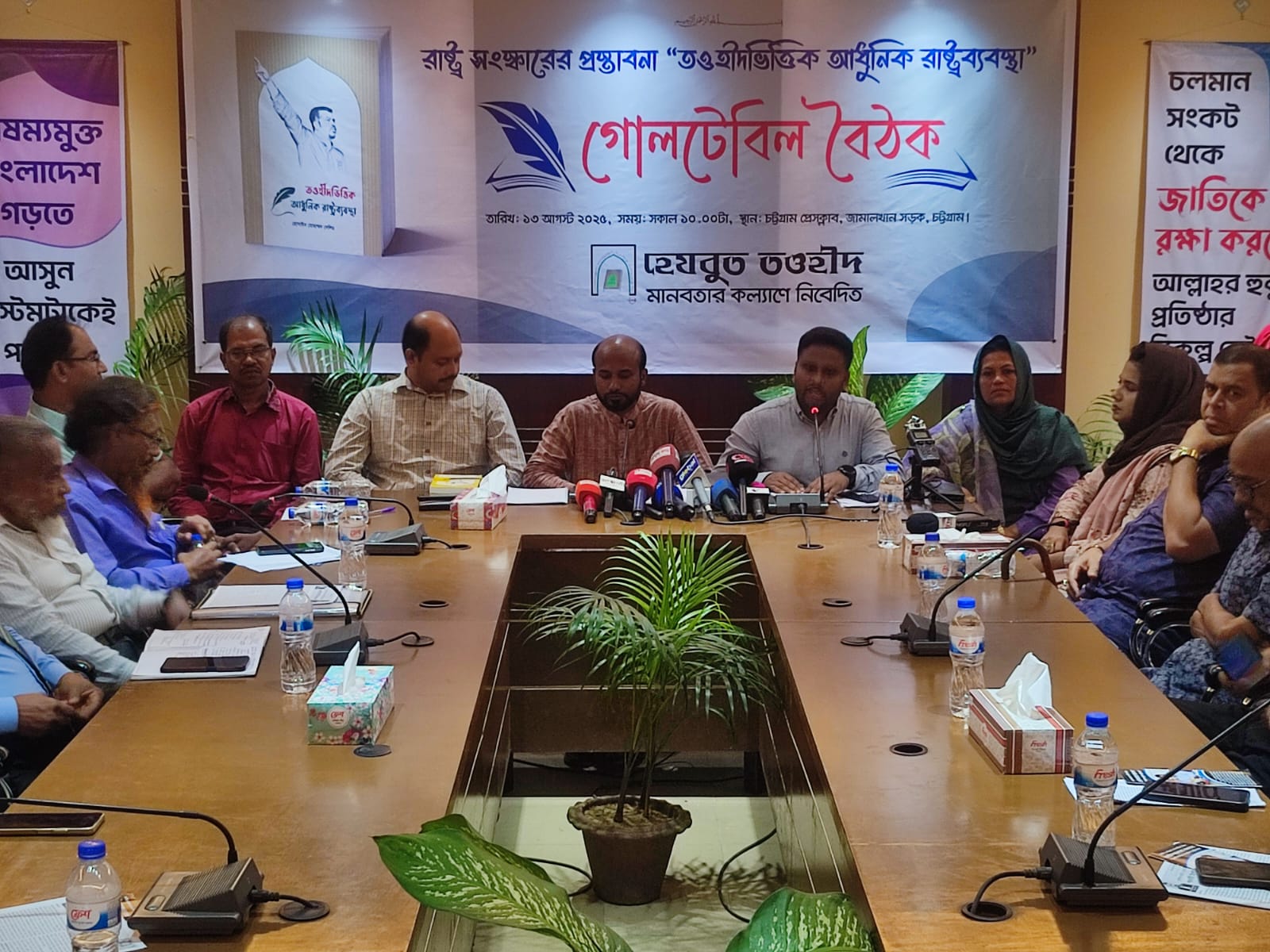 চট্টগ্রামে হেযবুত তাওহীদের আয়োজনে ‘তওহীদভিত্তিক আধুনিক রাষ্ট্রব্যবস্থা' শীর্ষক গোলটেবিল বৈঠক অনুষ্ঠিত হয়েছে। বুধবার (১৩ আগষ্ট) সকাল ১০টায় চট্টগ্রাম প্রেসক্লাবের সুলতান আহম্মেদ হলে এই আয়োজন করা হয়।