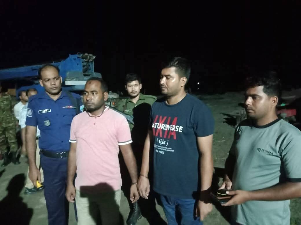 এসময় ডেপুটি প্রজেক্ট ম্যানেজার নুর নবী (৩৮) ও সাইট ইঞ্জিনিয়ার মোহাম্মদ রিয়াজুল (৩২)কে আটক করা হয়। বালু উত্তোলন কাজে ব্যবহৃত প্রায় ১.৫ কিলোমিটার পাইপ ধ্বংস করা হয় এবং ১ টি ইঞ্জিন জব্দ করা হয়।