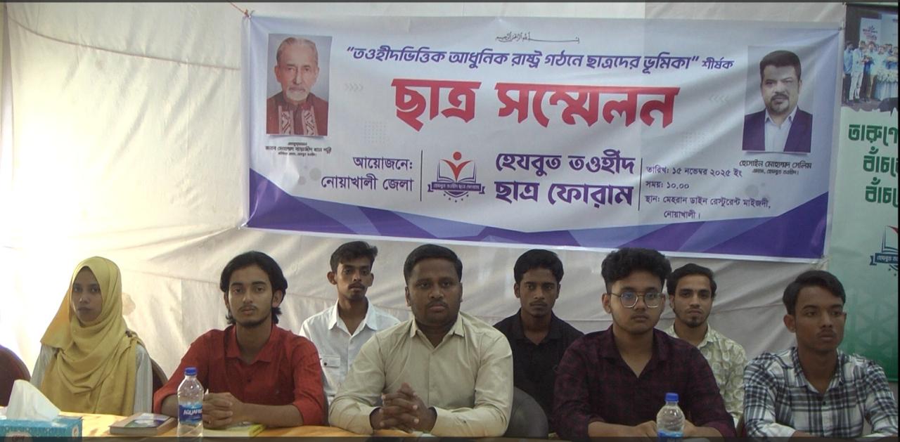 নোয়াখালীতে অরাজনৈতিক আন্দোলন হেযবুত তওহীদের ছাত্র সংগঠন 'ছাত্র ফোরাম' এর সম্মেলন অনুষ্ঠিত হয়েছে। নোয়াখালী ছাত্র ফোরামের পক্ষ থেকে শনিবার (১৫ নভেম্বর) সকালে মাইজদী মেহরান ডাইন রেস্টুরেন্টে এই সম্মেলন অনুষ্ঠিত হয়েছে।
